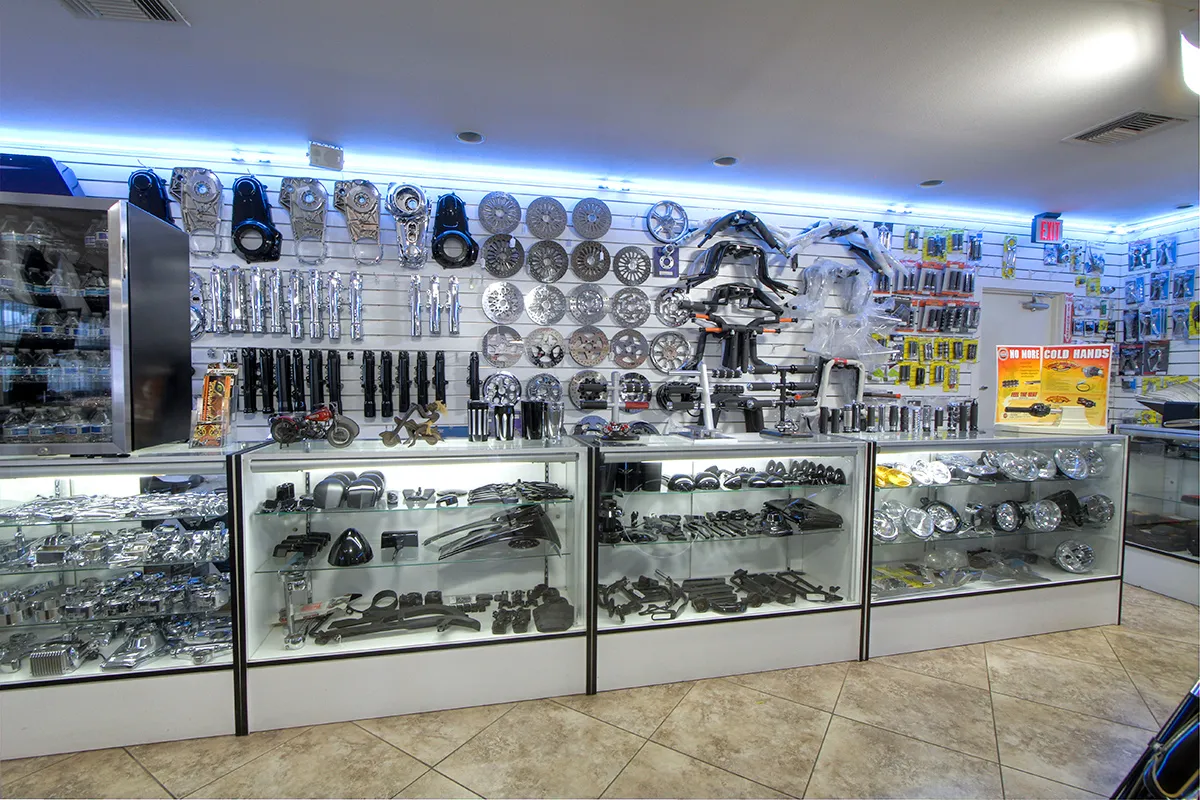 Need handlebars, lighting, sissy bars, brake pads, or engine upgrades? We’ve got them in stock and ready to install or ship nationwide. Stop by our shop or browse online—we’ll help you find the perfect parts to keep your ride looking and performing at its best.